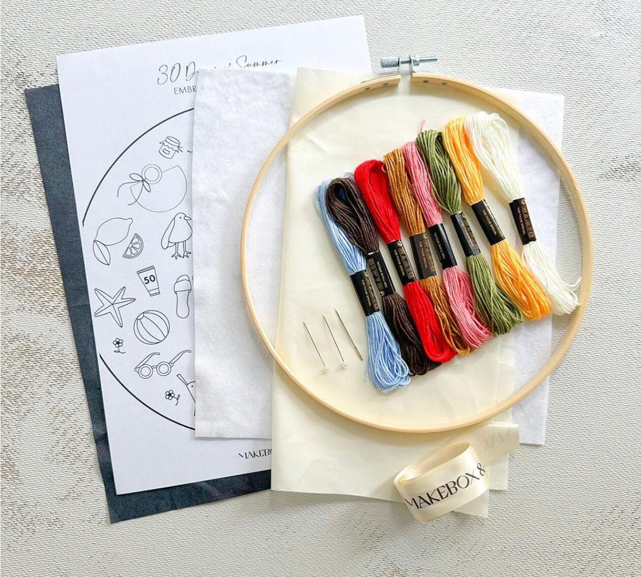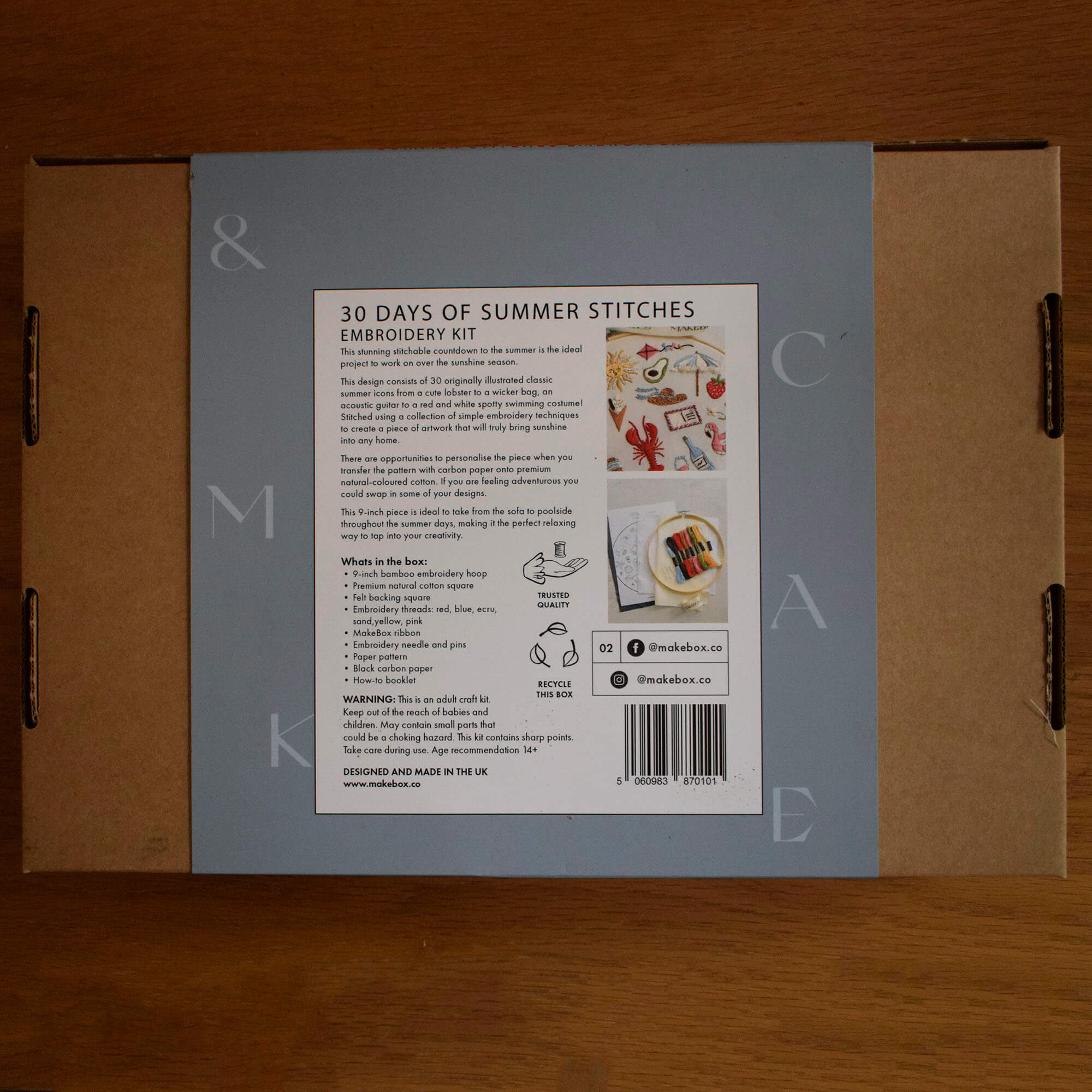 The Makebox & Co 30 Days of Summer Stitches kit is brimming with cheerful, sun-inspired motifs. From seashells and ice creams to fruit, flowers and seaside treats, each little design brings a touch of summer to your stitching. With each motif taking around 15–20 minutes to complete, this is a perfect relaxed crafting project whether at home or on holiday.