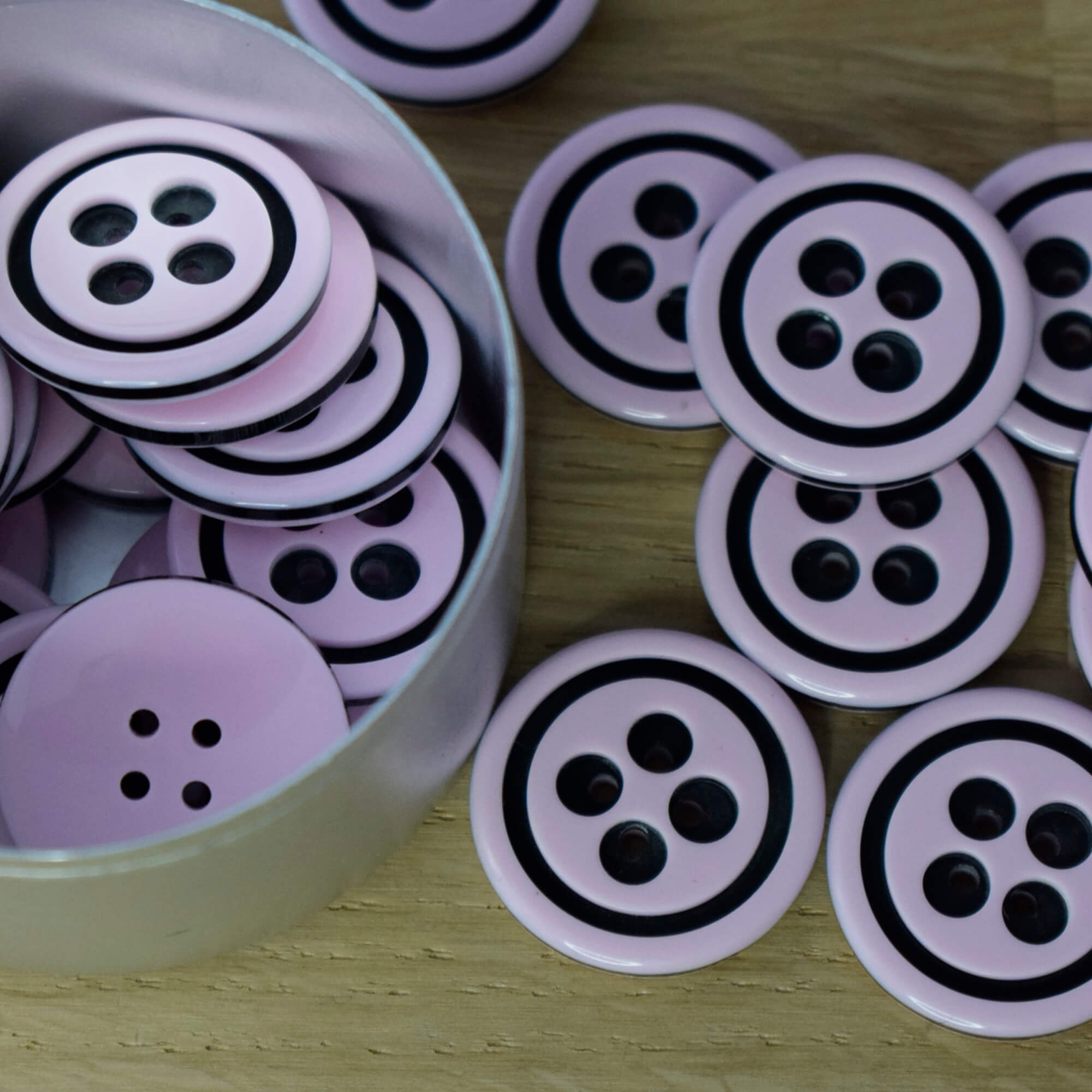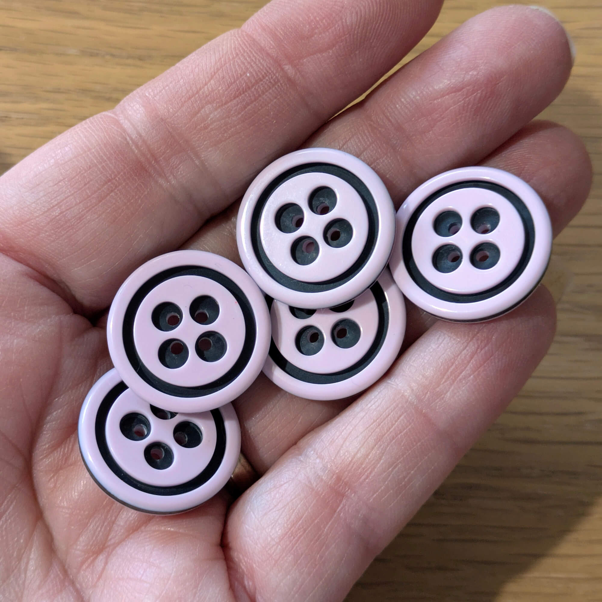 Eye-catching two-tone design round buttons with 4-holes, light pink with a black indent for a modern playful look Sold in sets of 5