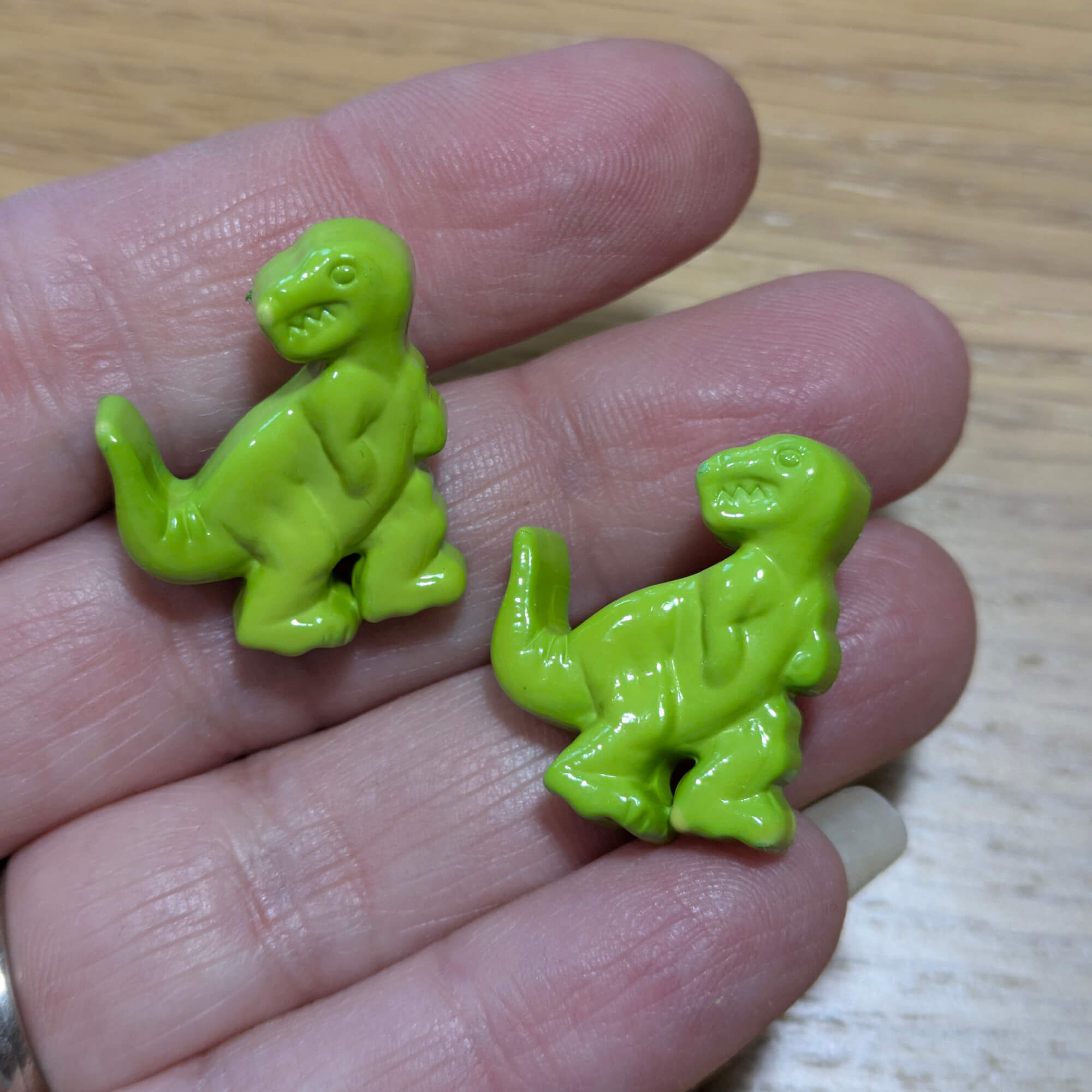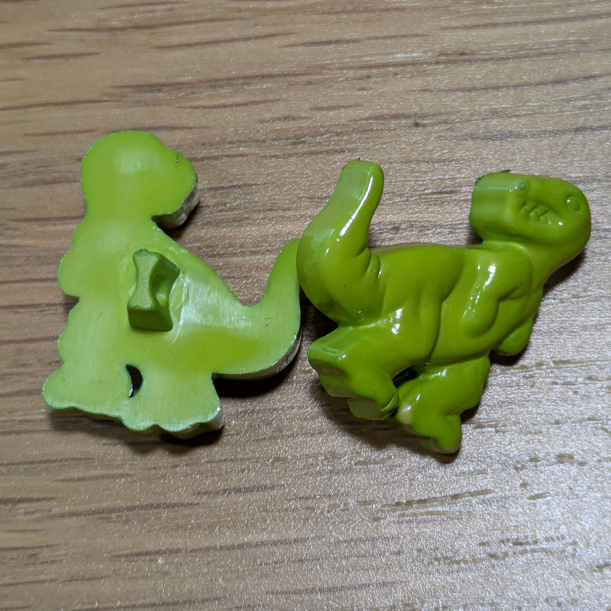 Make your projects truly dino-mite with these cheerful green T-Rex buttons! Shaped like the classic Tyrannosaurus rex, each button features charming raised detailing that adds playful texture and character to your handmade creations.