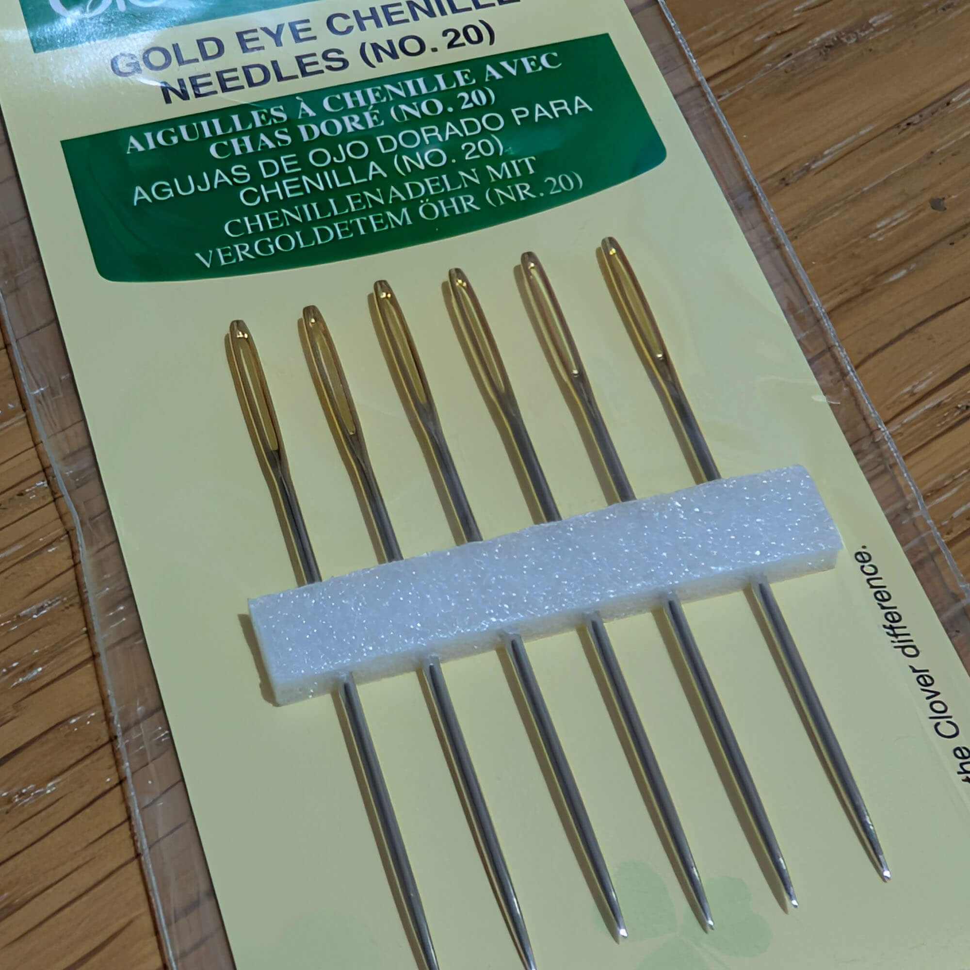 Don’t know what a chenille needles are? It’s basically a tapestry needle with a sharp or pointy end as opposed to a blunt one.
