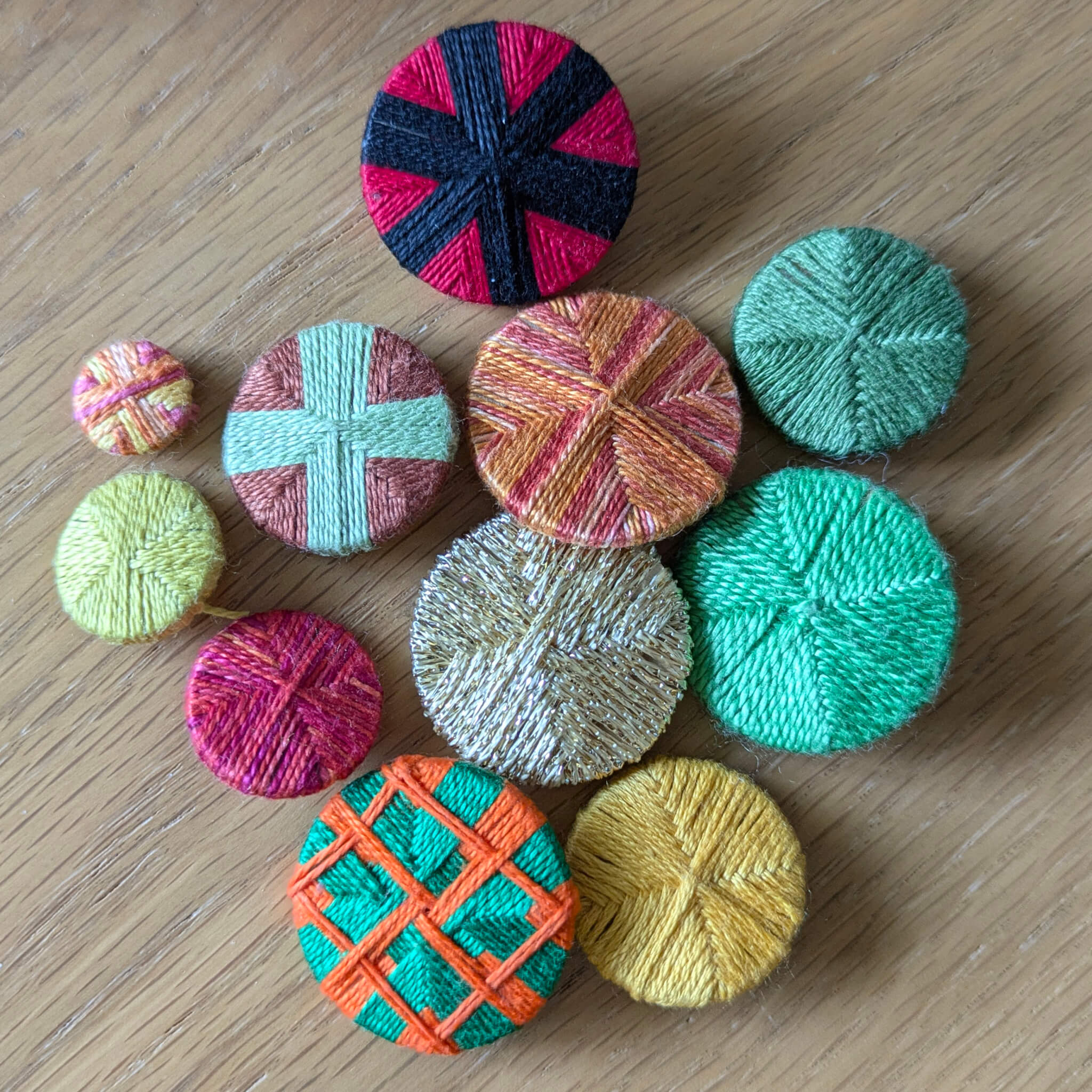 During the workshop, participants will learn how to make Death-Head buttons along with other thread-wrapped button styles. All attendees will have plenty of materials to use on the day, plus additional supplies to take home for further practice. Printed instructions will also be provided.