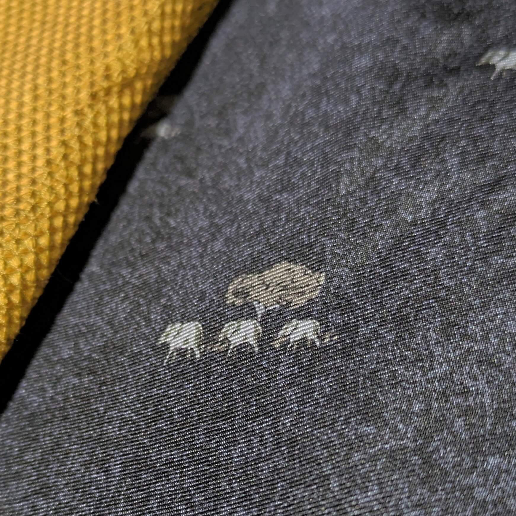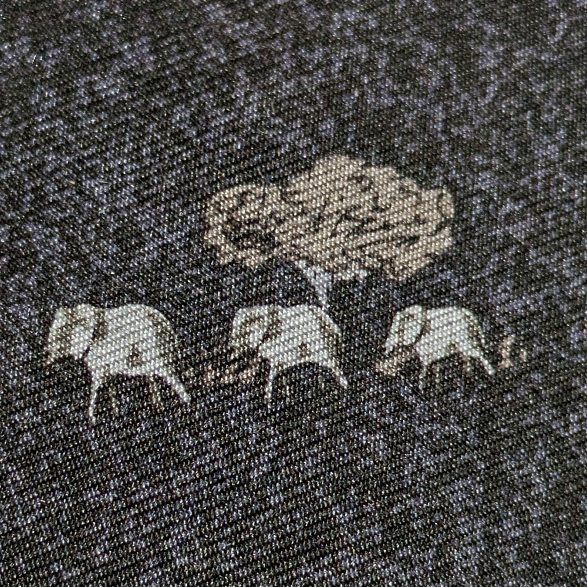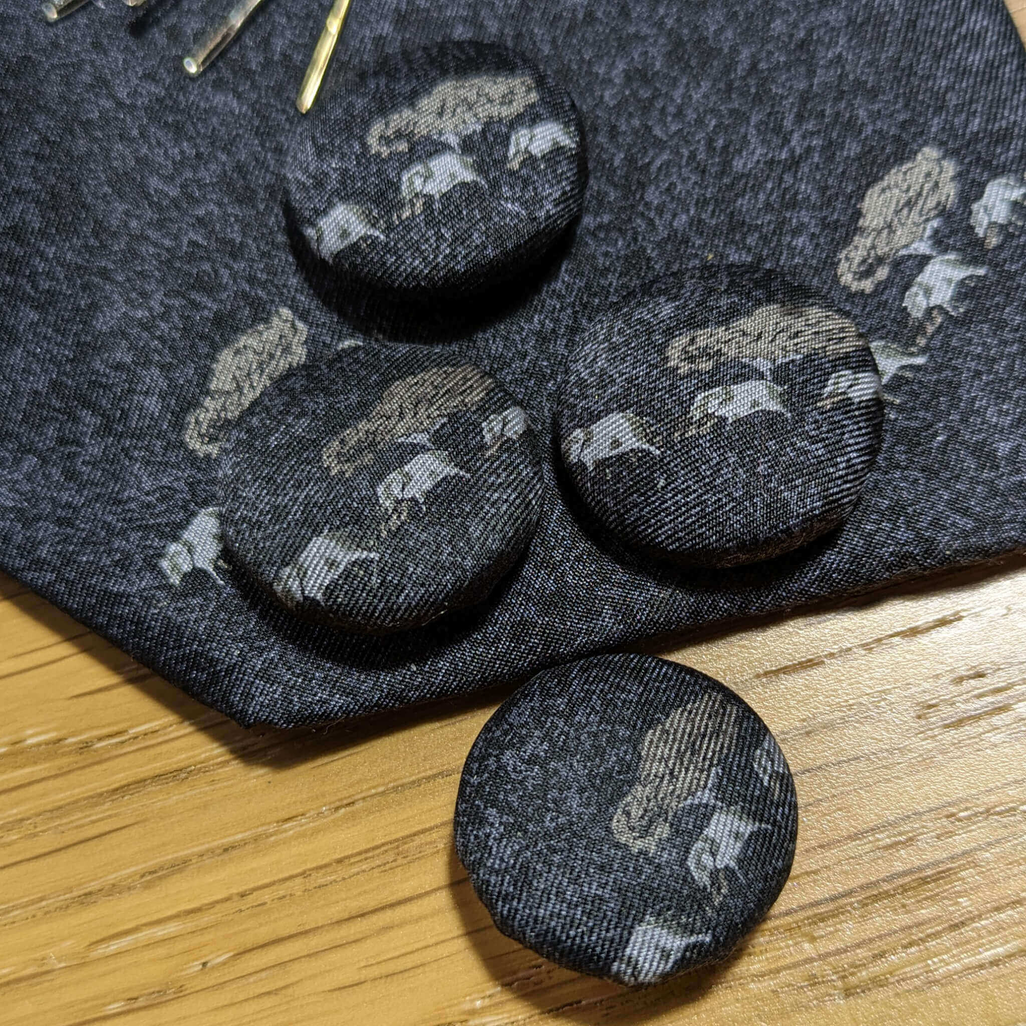 Sustainable fashion accessories, these buttons are hand covered with a 100% silk fabric which comes from a high quality vintage tie ensuring a unique and eco-conscious touch. They feature an usual design of 3 African Savanna or Bush Elephants in a row with a tree.