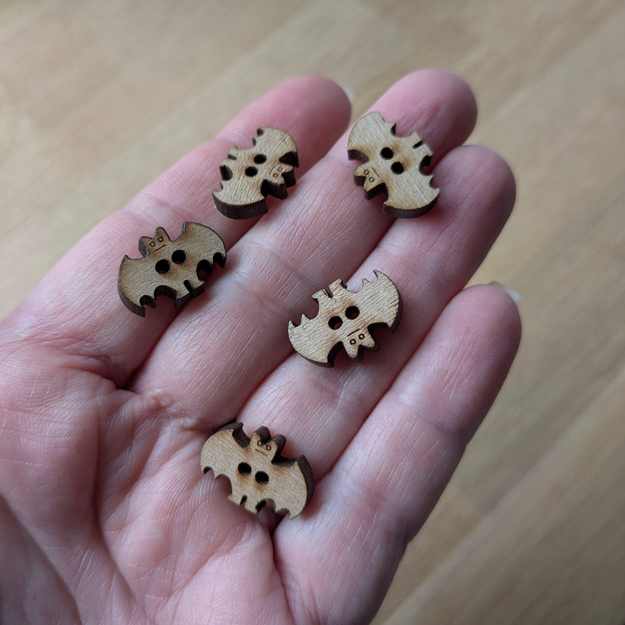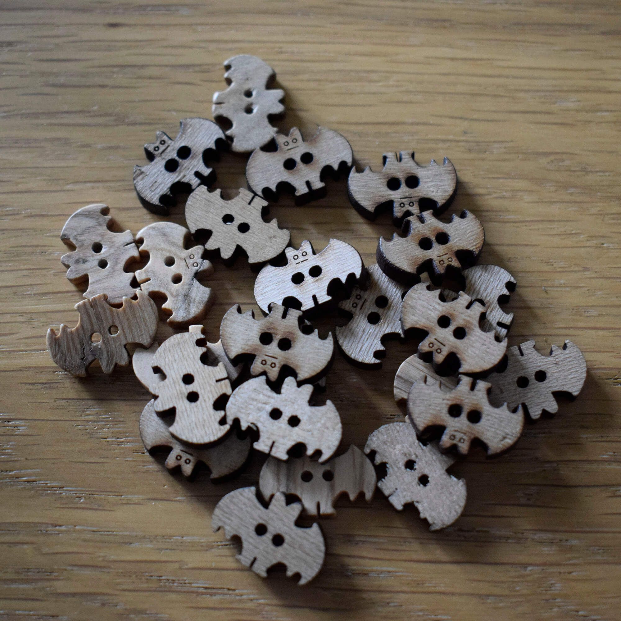 These characterful bat-shaped buttons by Jomil add a playful touch to your handmade makes. Each button is laser-cut from natural wood with crisp wing details and smooth edges, giving them a warm, rustic finish that works beautifully with knitted, sewn and crochet projects.