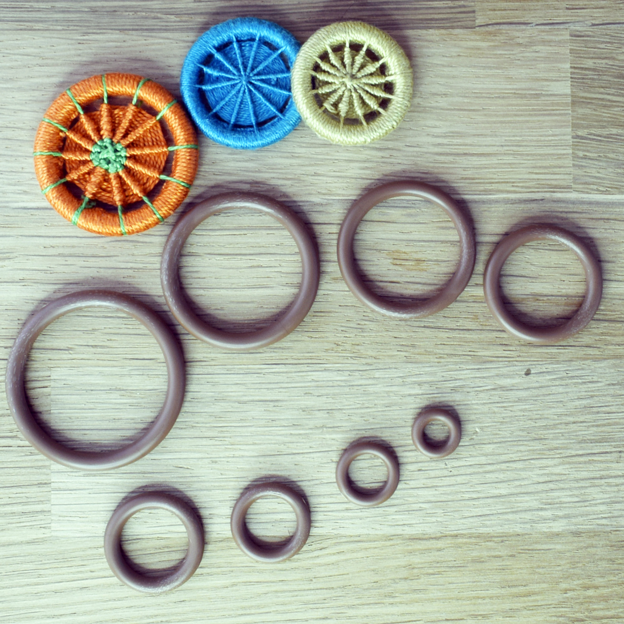 These versatile rings are perfect for making Dorset buttons and other thread-wrapped or fabric-covered button styles, as well as for weaving, macramé, and decorative crafts such as keyrings, bag charms, and hanging ornaments.