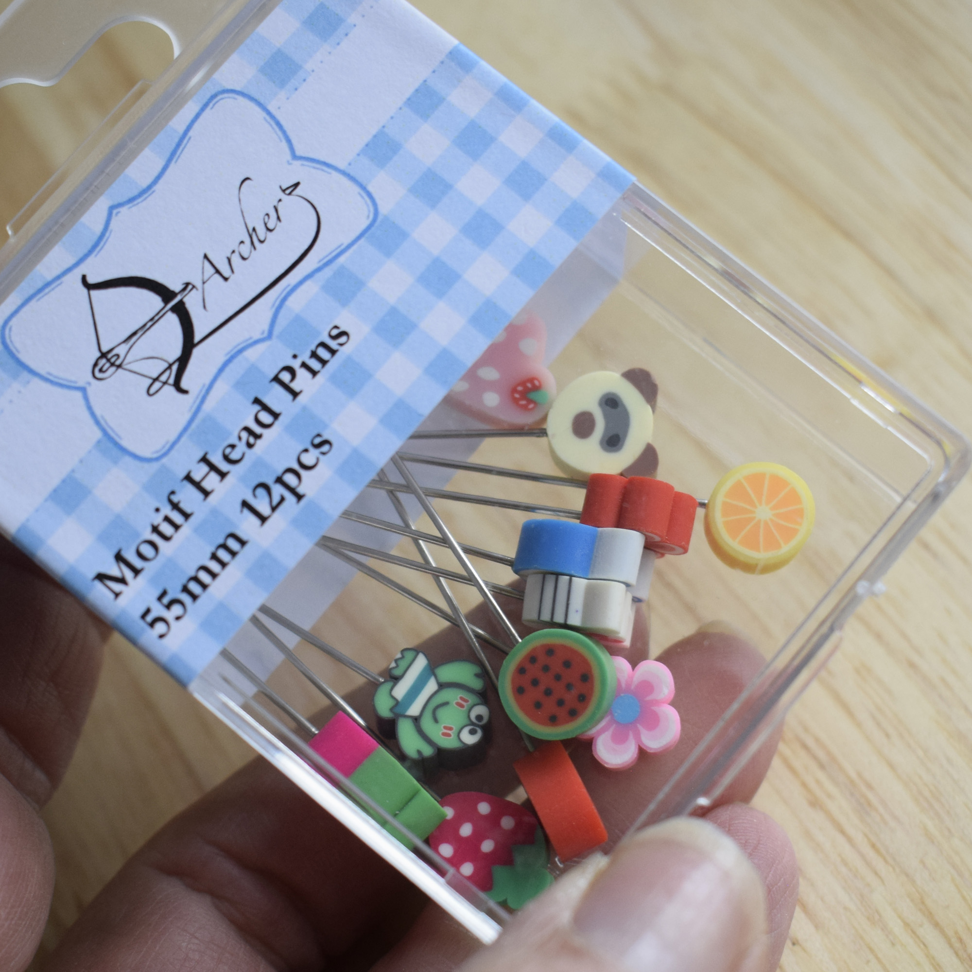 Add some character to your sewing basket with this delightful assortment of novelty sewing pins, presented in a reusable box by Archer Haberdashery. Each pin measures 55 mm in length and features a fun, themed head motif in a mix of bright colours and shapes.