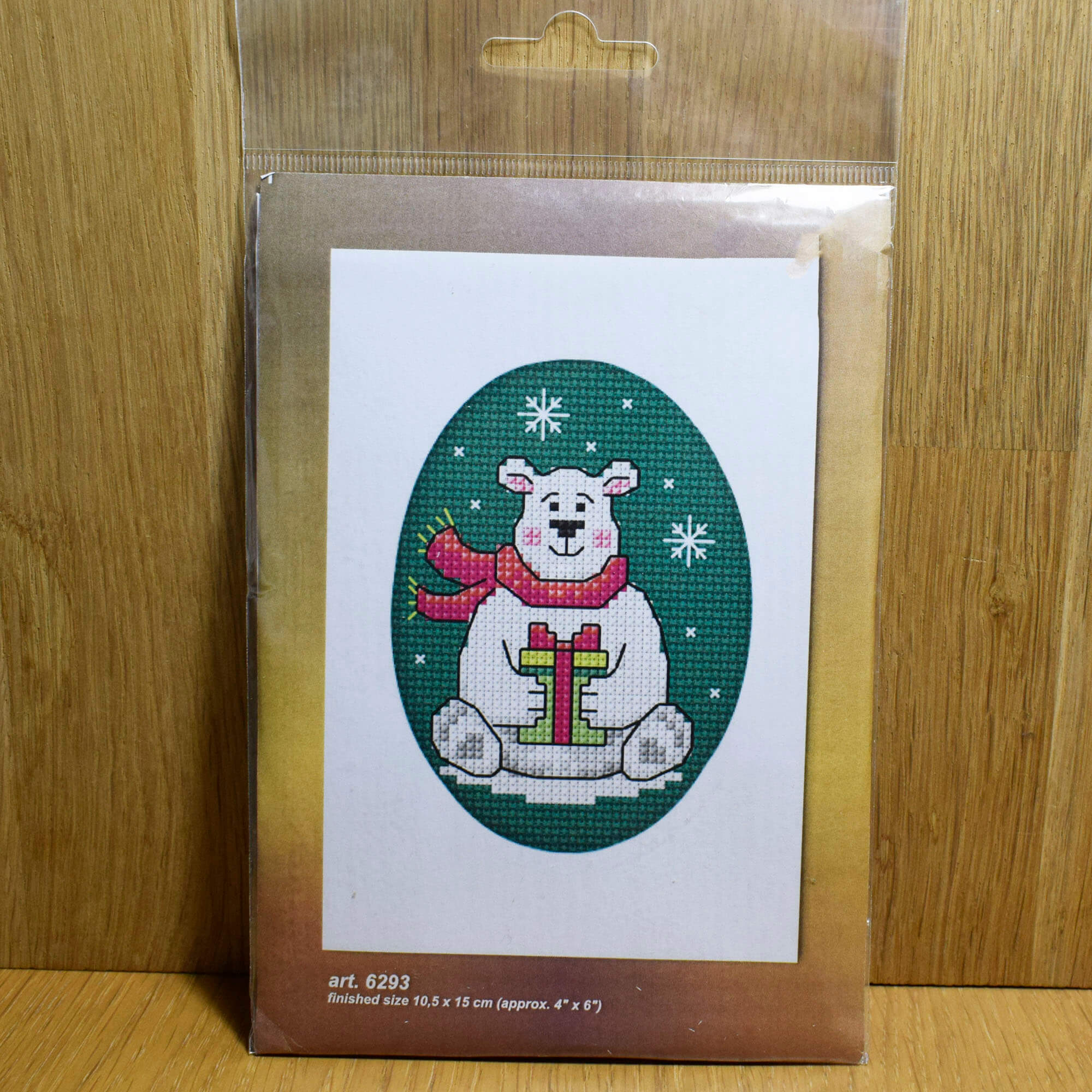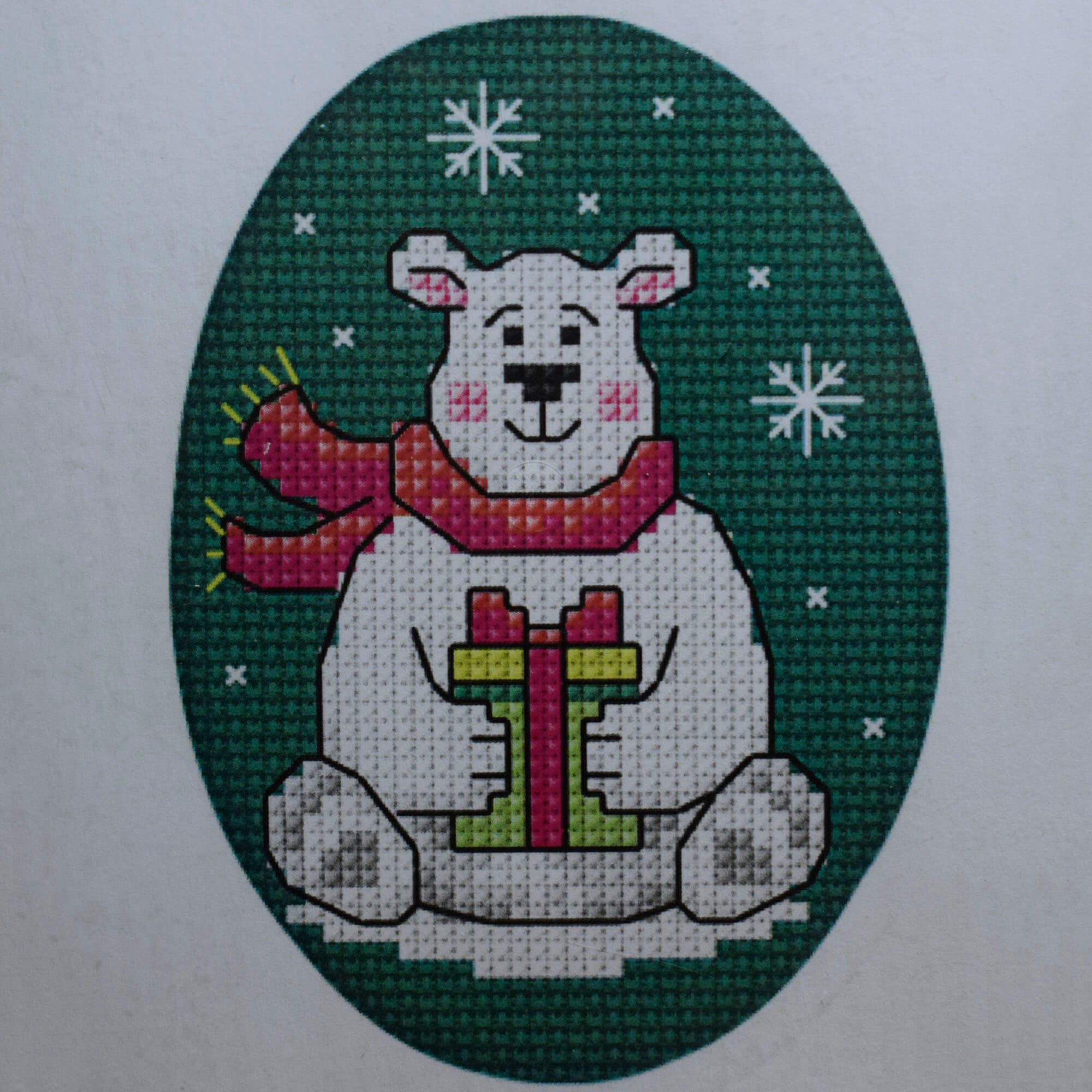 Polar Bear and Present Christmas Greeting Card Cross-Stitch Kit