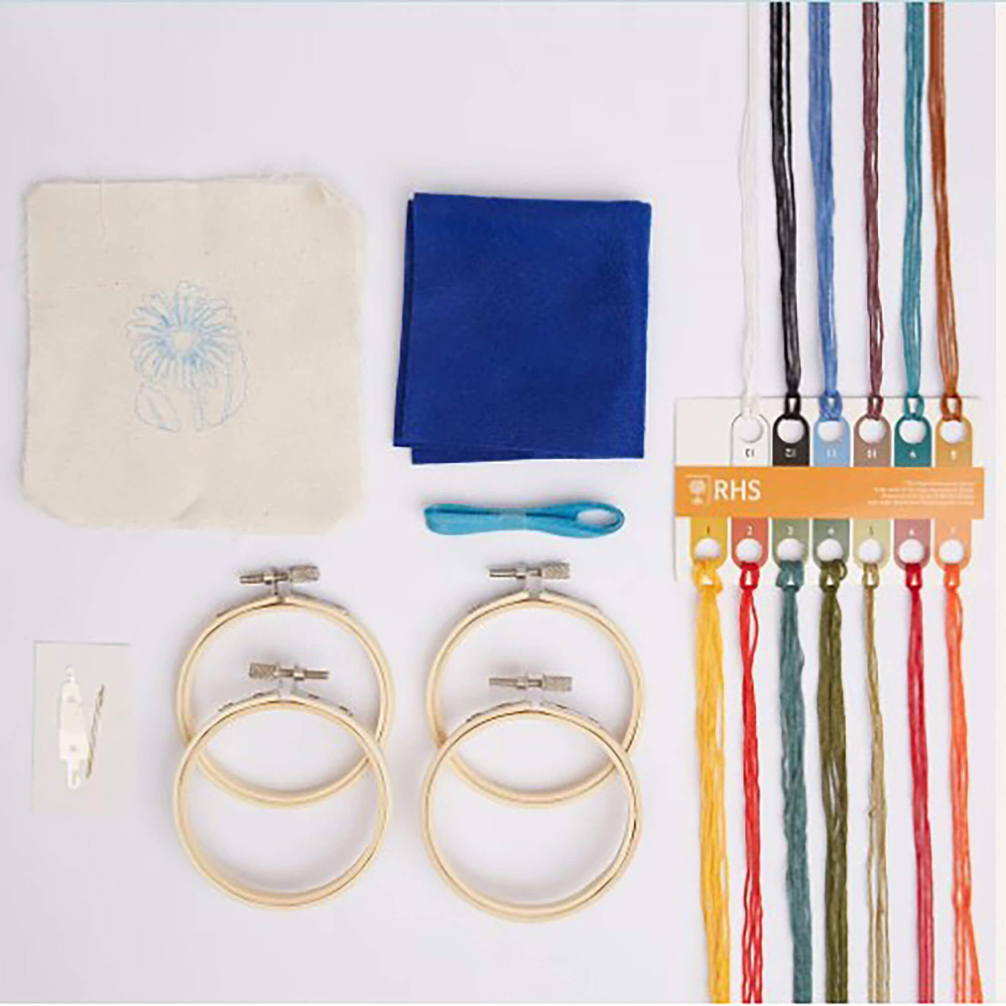 Celebrate the beauty of the garden all year round with the RHS In the Garden Embroidery Kit. This complete set allows you to create four small embroidery pieces, each inspired by botanical illustrations from the RHS collection.