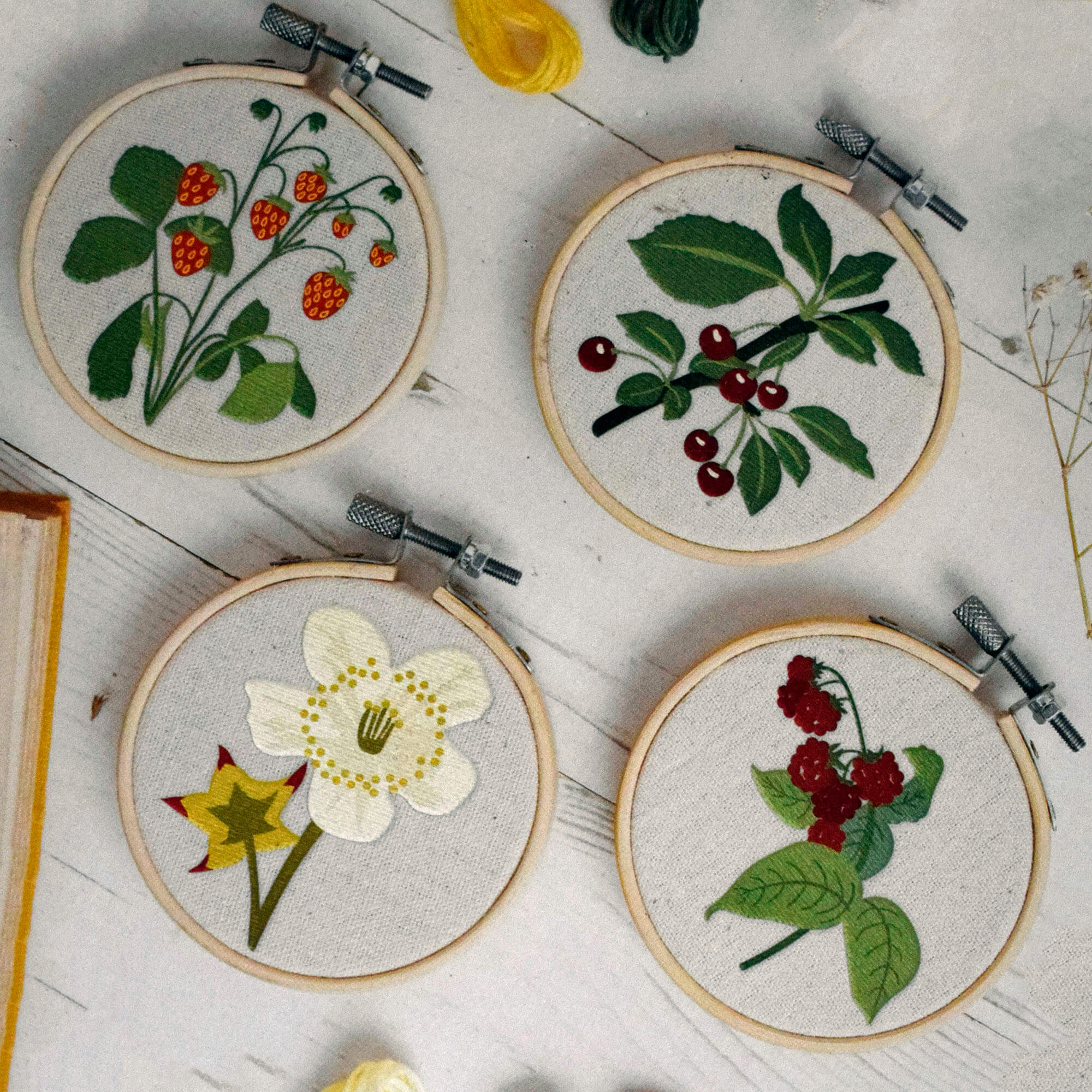 With natural bamboo hoops and vivid berry motifs, this kit brings a fresh, botanical feel indoors — perfect for summer décor or to enjoy year-round.