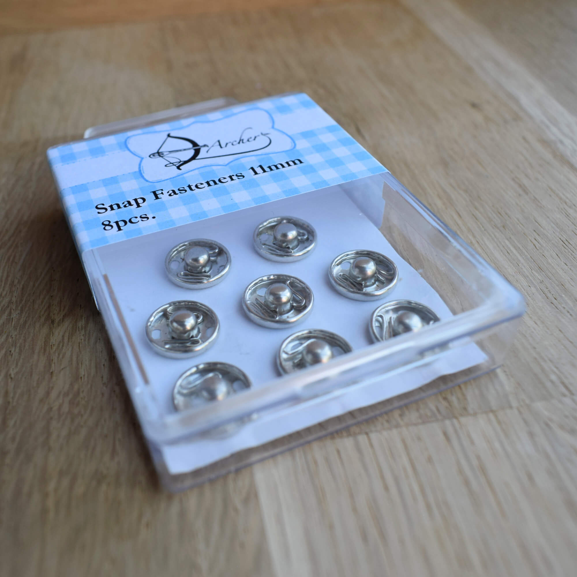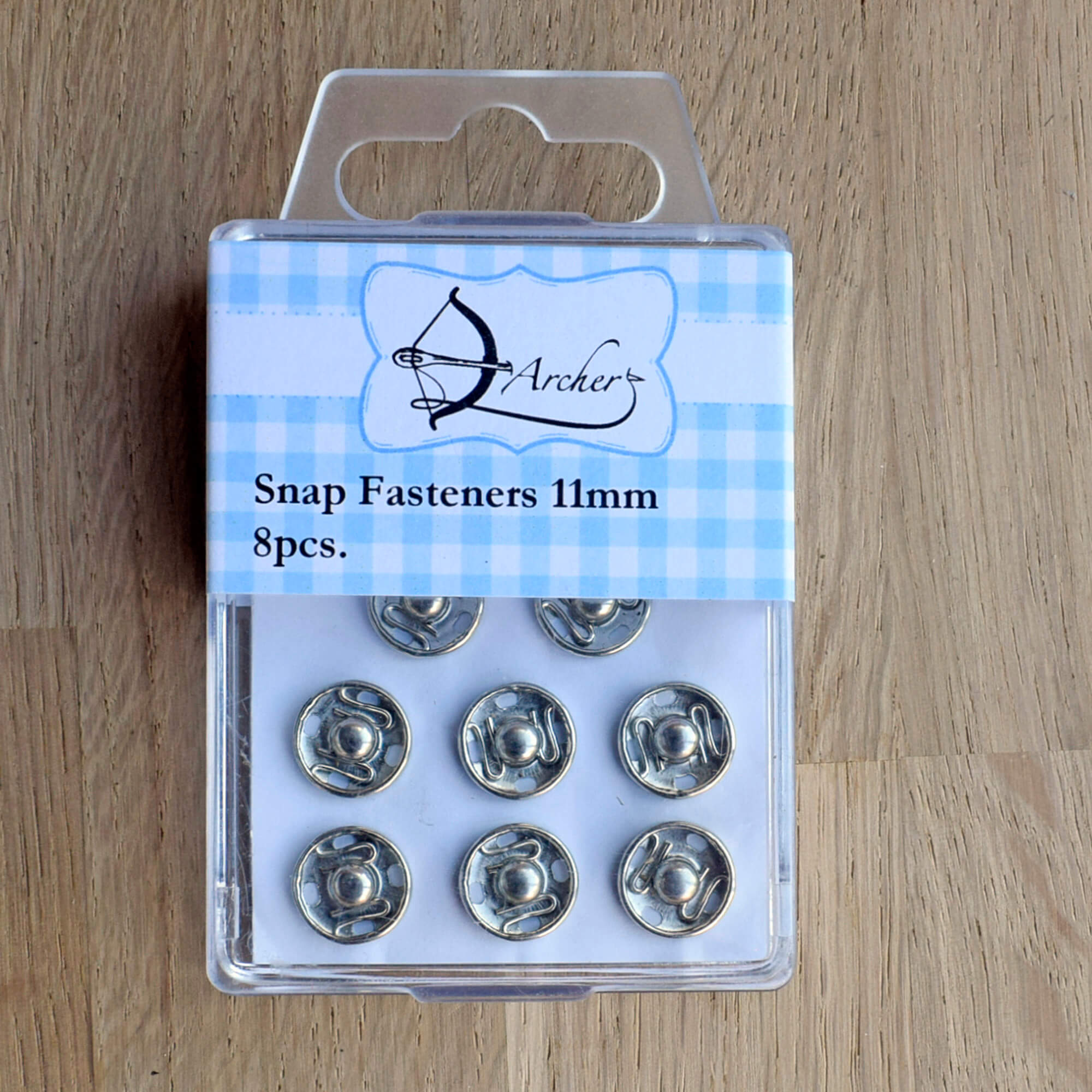 Sew-on snap fasteners, also known as press studs, offer a simple and reliable way to create neat closures on handmade garments and textile projects. These silver-coloured metal snap fasteners from Archer Haberdashery stitch directly onto fabric, making them a good choice when you want a traditional and discreet finish.