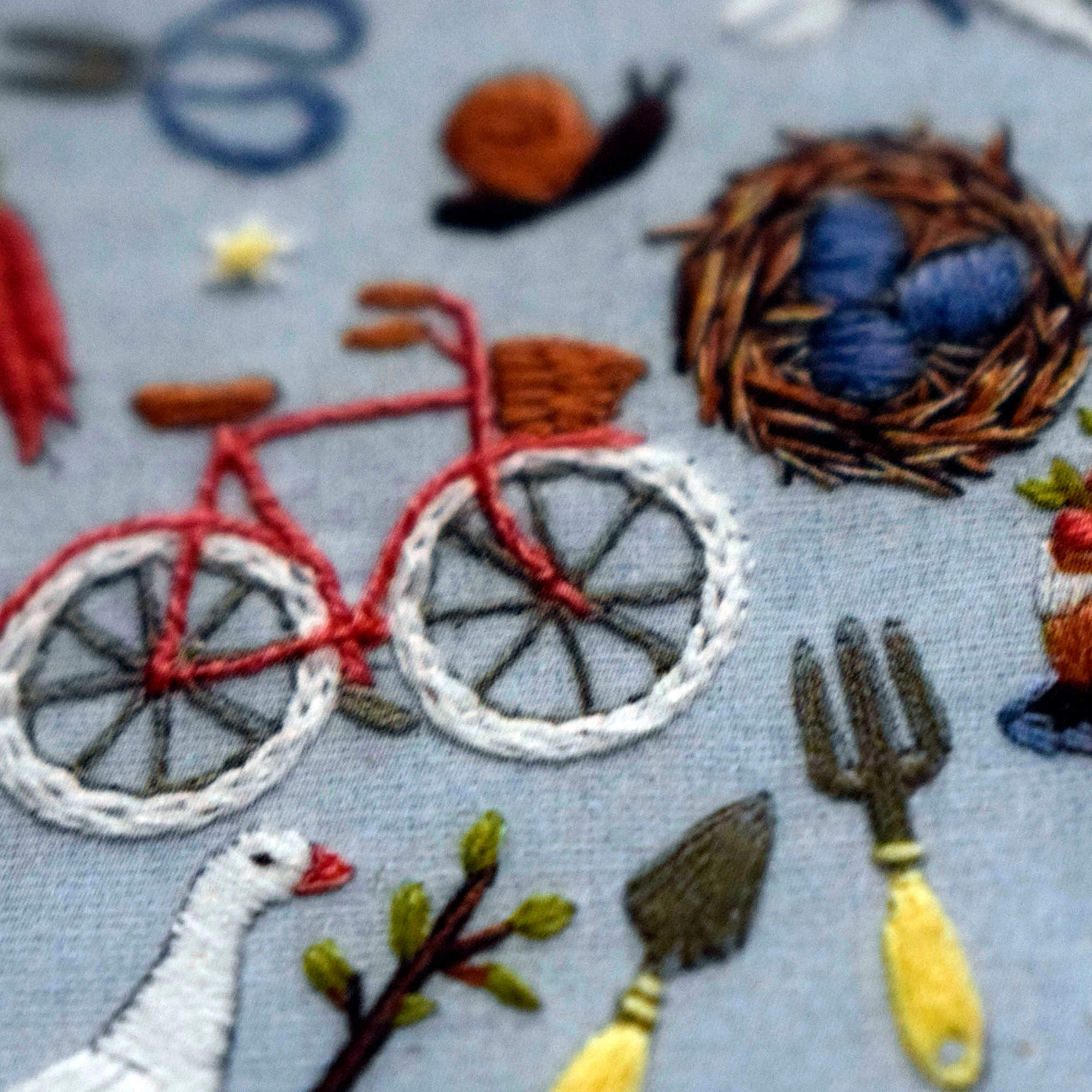 Celebrate the joy of spring with a bright, uplifting embroidery project full of seasonal motifs.