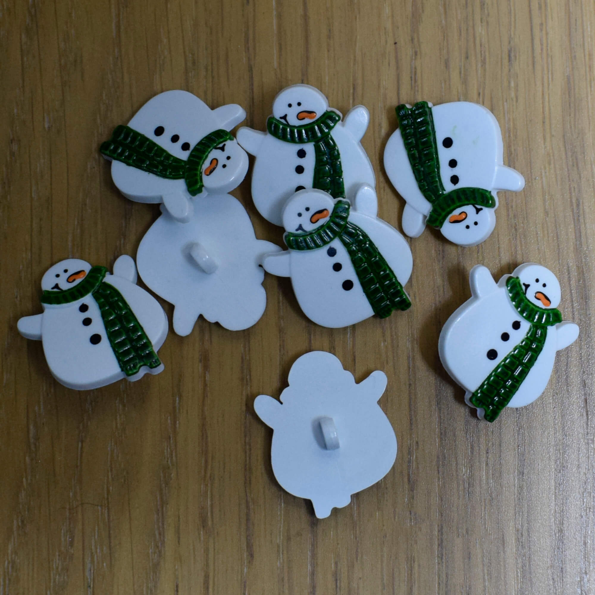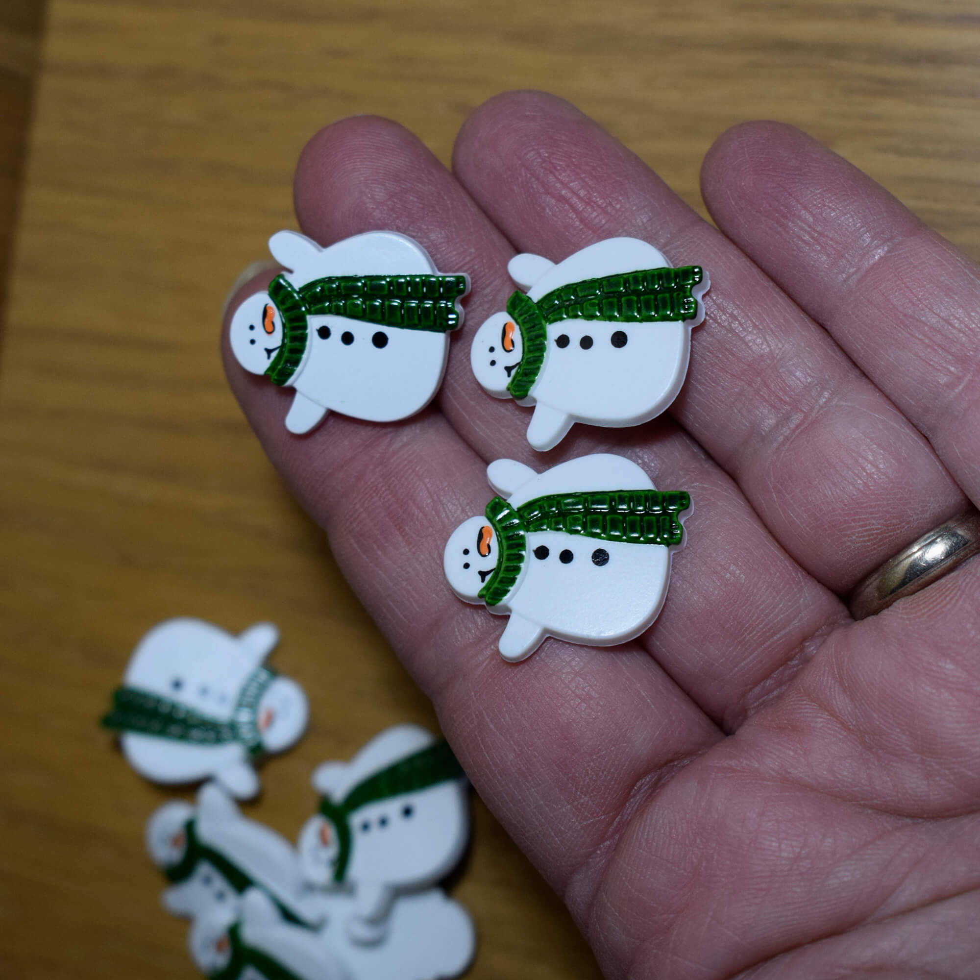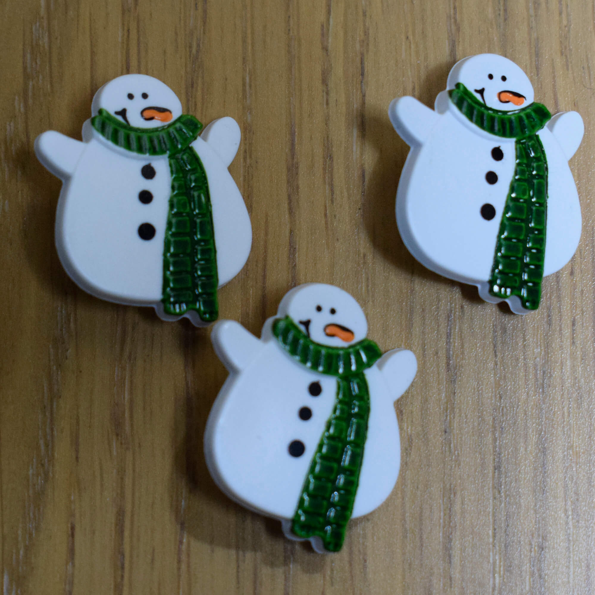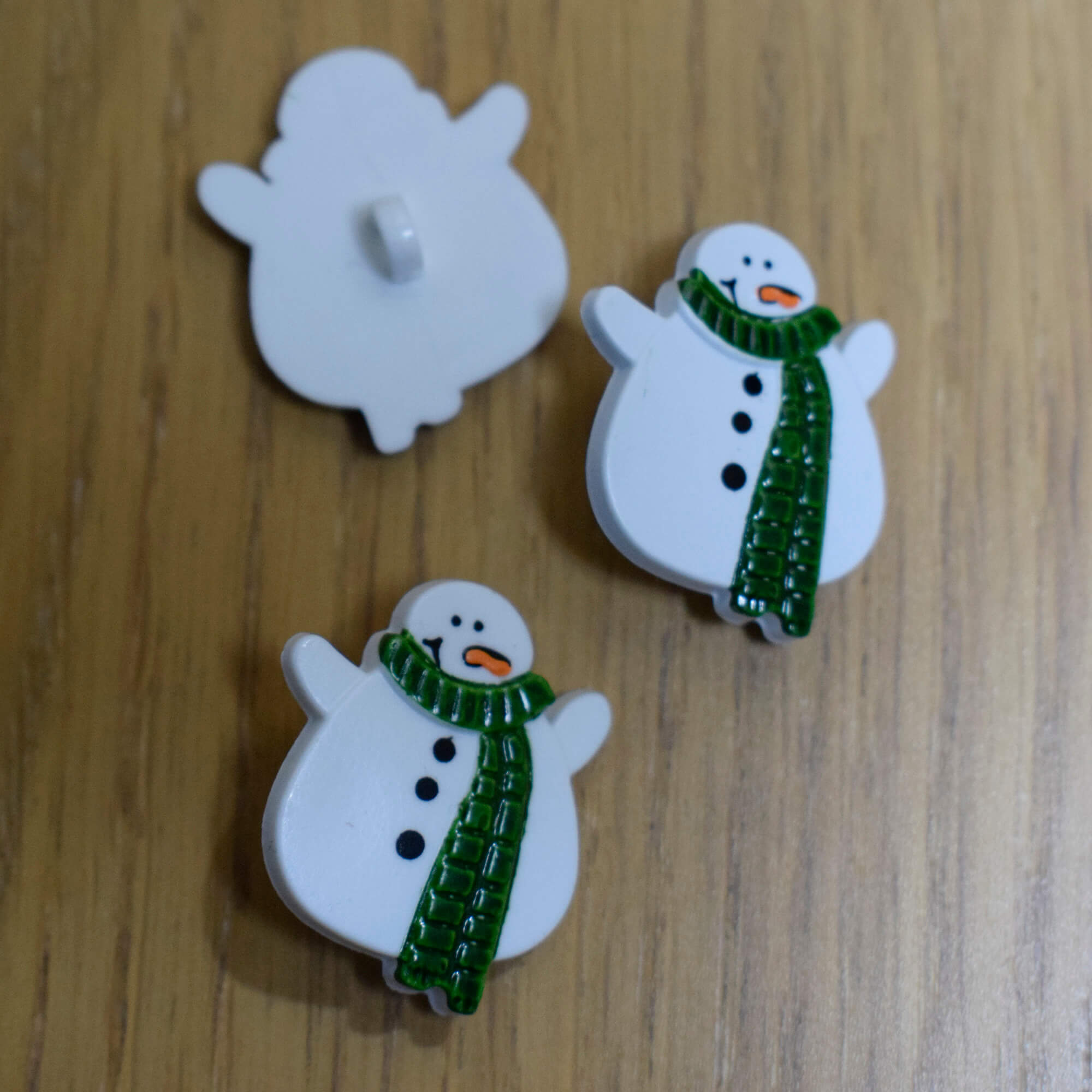 White Snowman with Green Scarf Shank Button 25mm – Nylon – Pack of 3