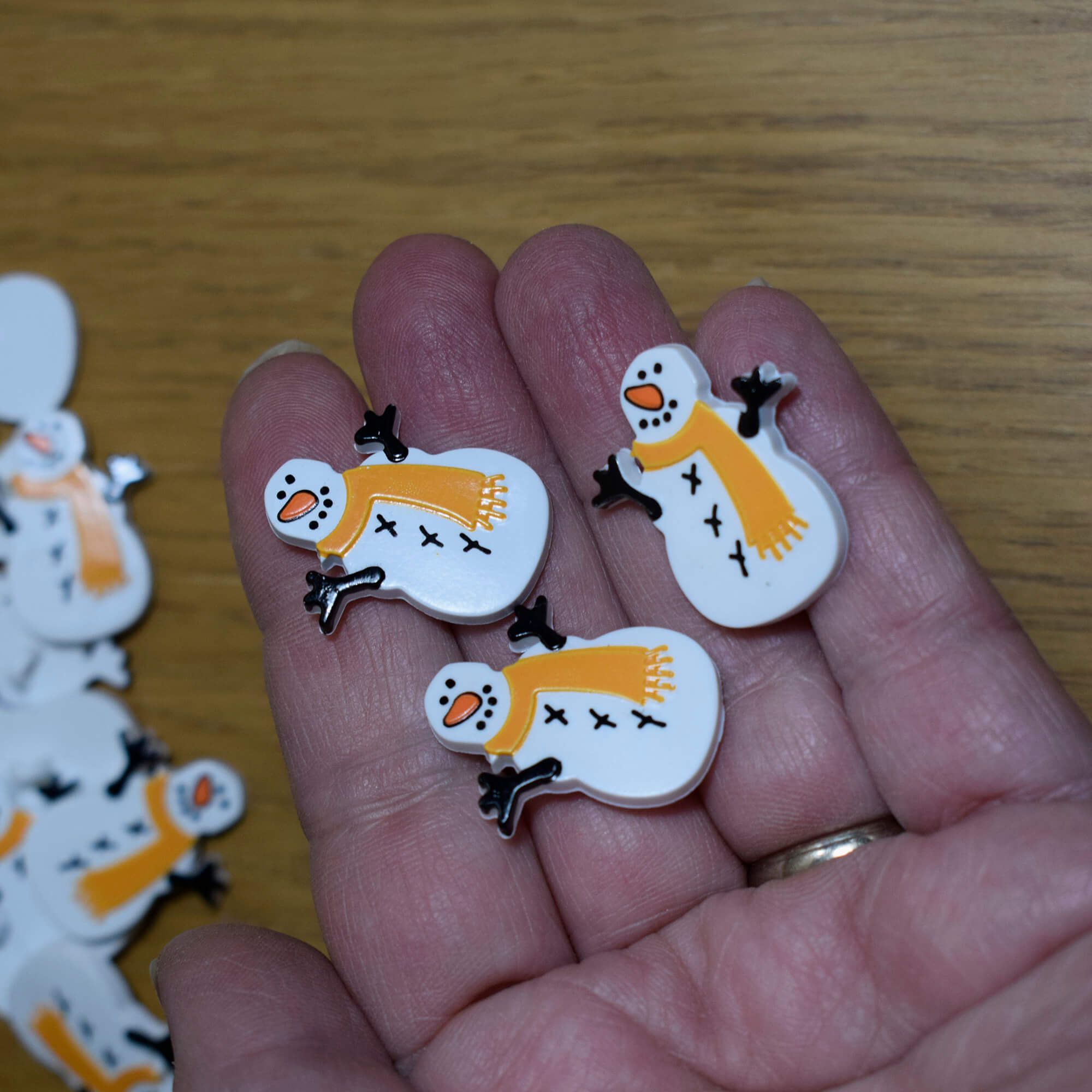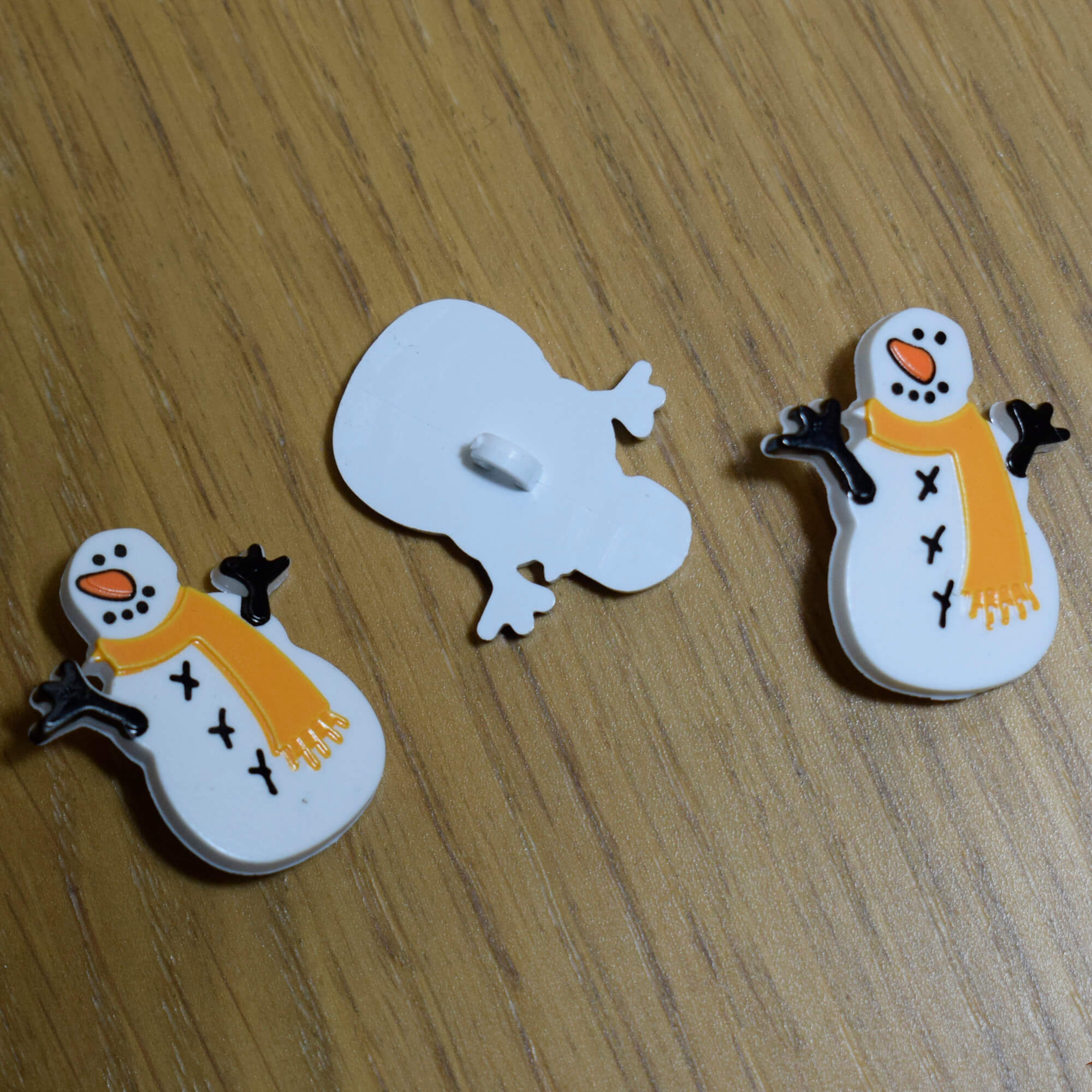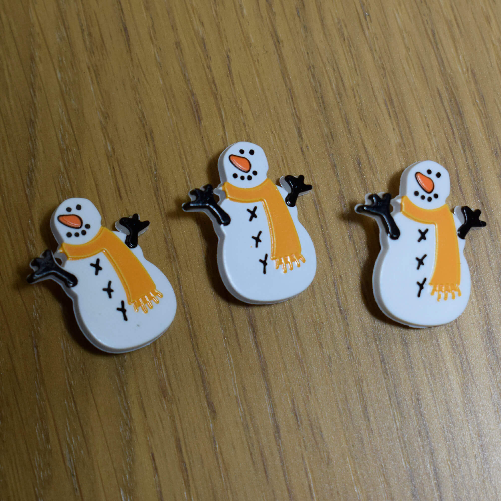 White Snowman With Yellow Scarf Shank Button 27mm – Nylon – Pack of 3