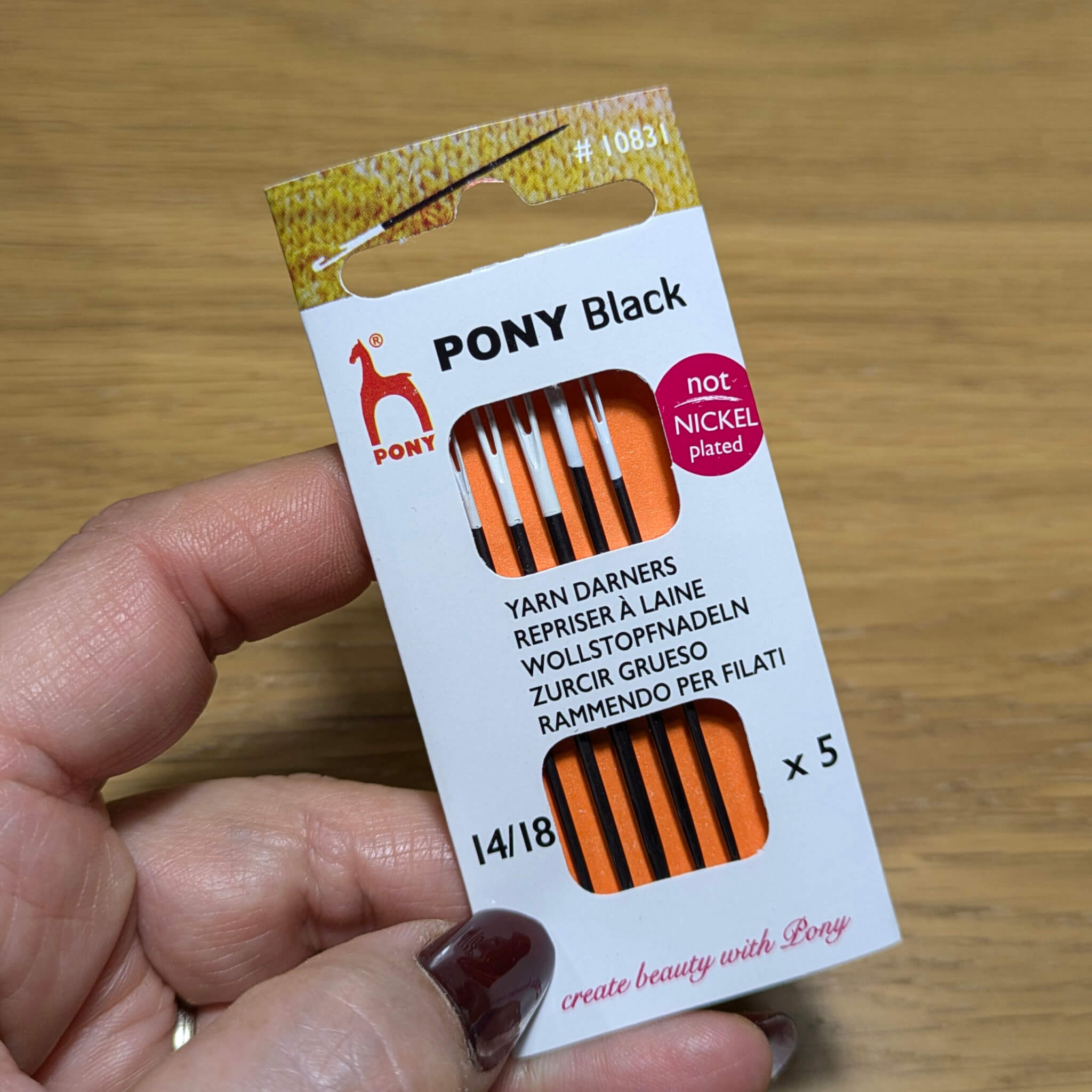 The Pony Black range of needles have a black non-reflective surface and a white eye, which is very soothing to the eye and which makes threading so much easier. They are made from hardened and tempered steel and are NOT nickel plated! This is good news if you suffer from metal allergies. In fact, they are not plated at all, which means that these needles may last longer than other allergy sufferers options such as gold plated needles. Often, after a while, the oil in your hands and the friction caused by the action of sewing will corrode the plating which will fade away and make your needle drag as the plating becomes uneven.