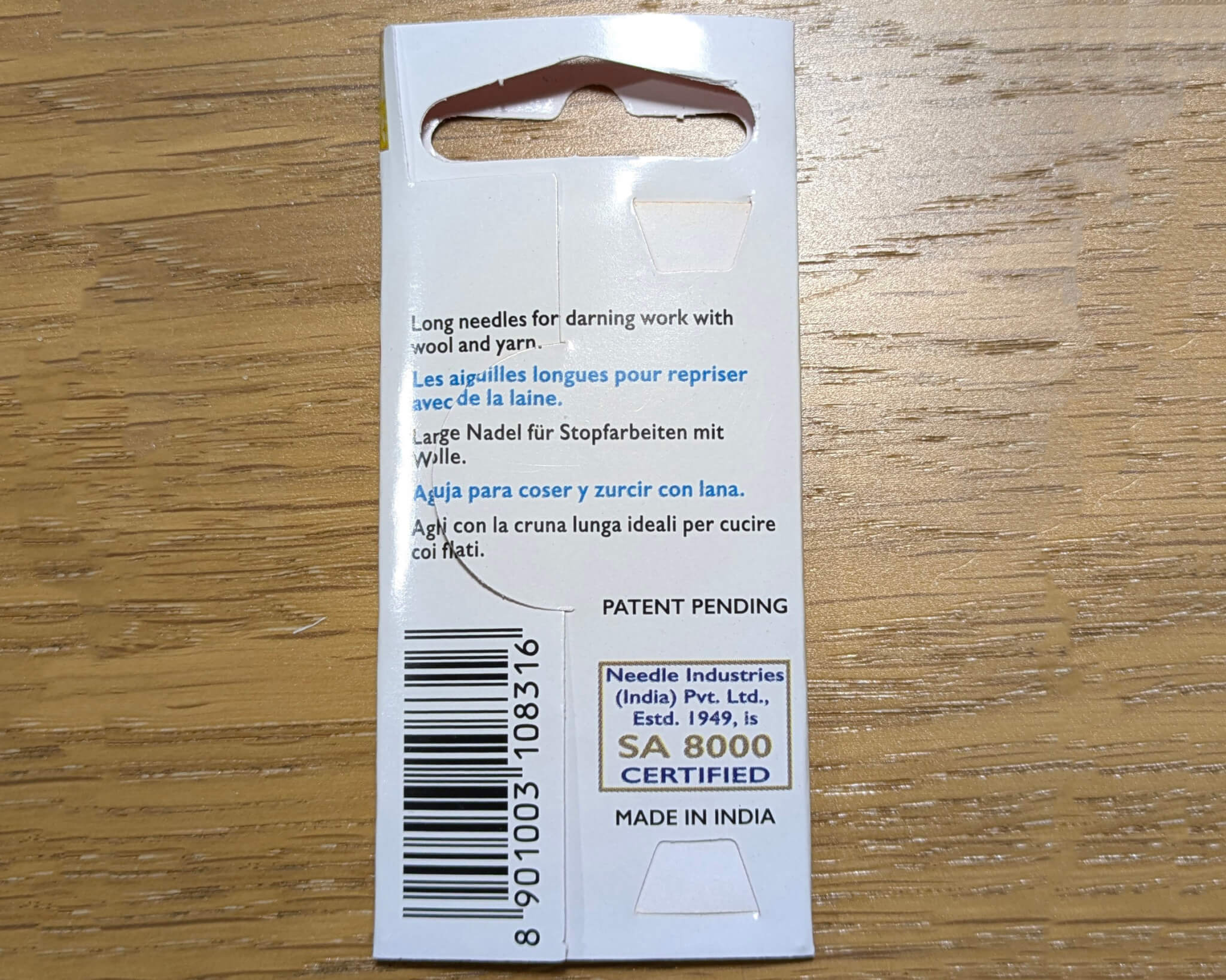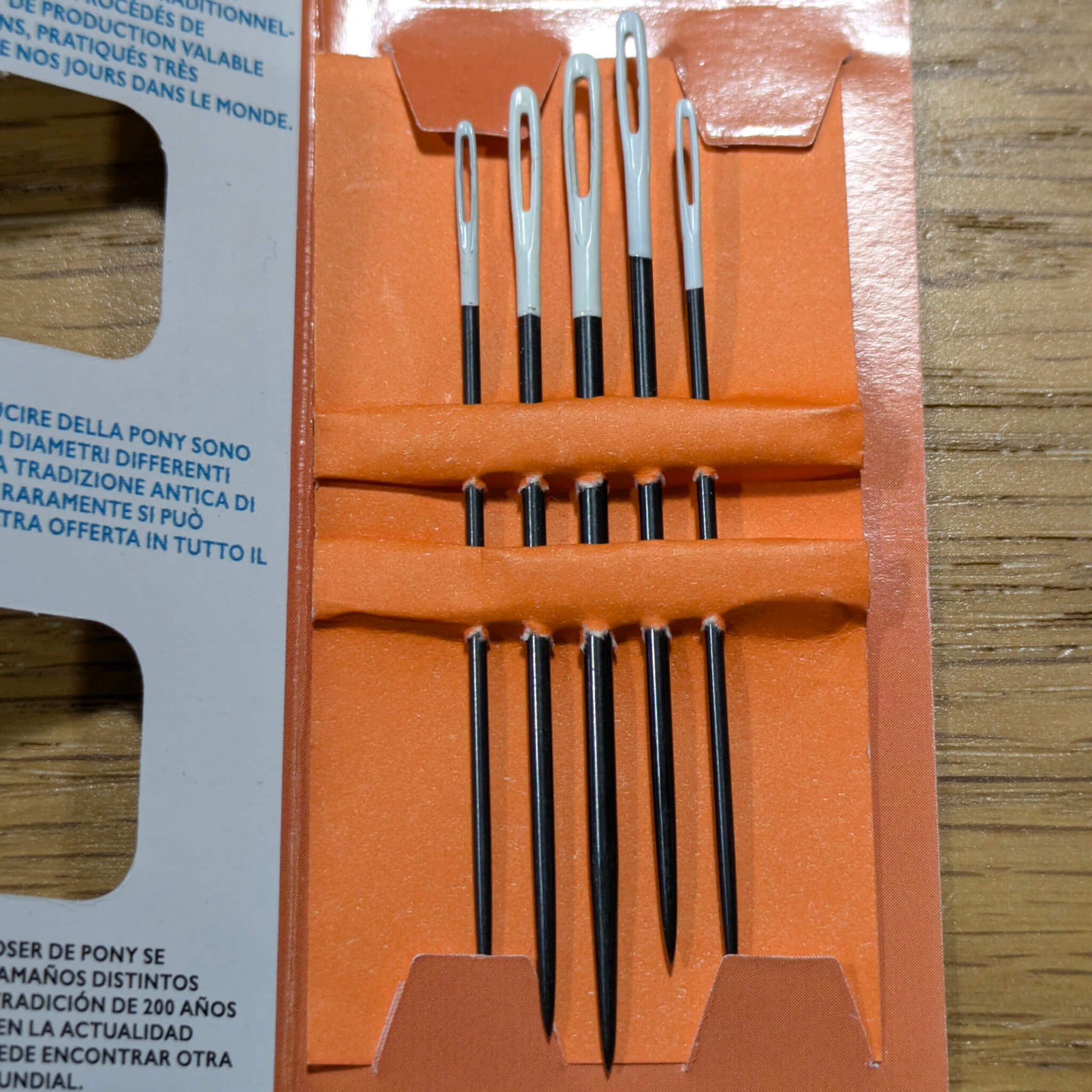 Long darners, also known as yarn or wool darning needles, are strong hand sewing needles with sharp points and long threading eyes and due to their thickness commonly used for heavy duty darning. These long darners hand sewing needles are supplied in a plastic free paper folder as a pack of 5 all in sizes 10 to 14.